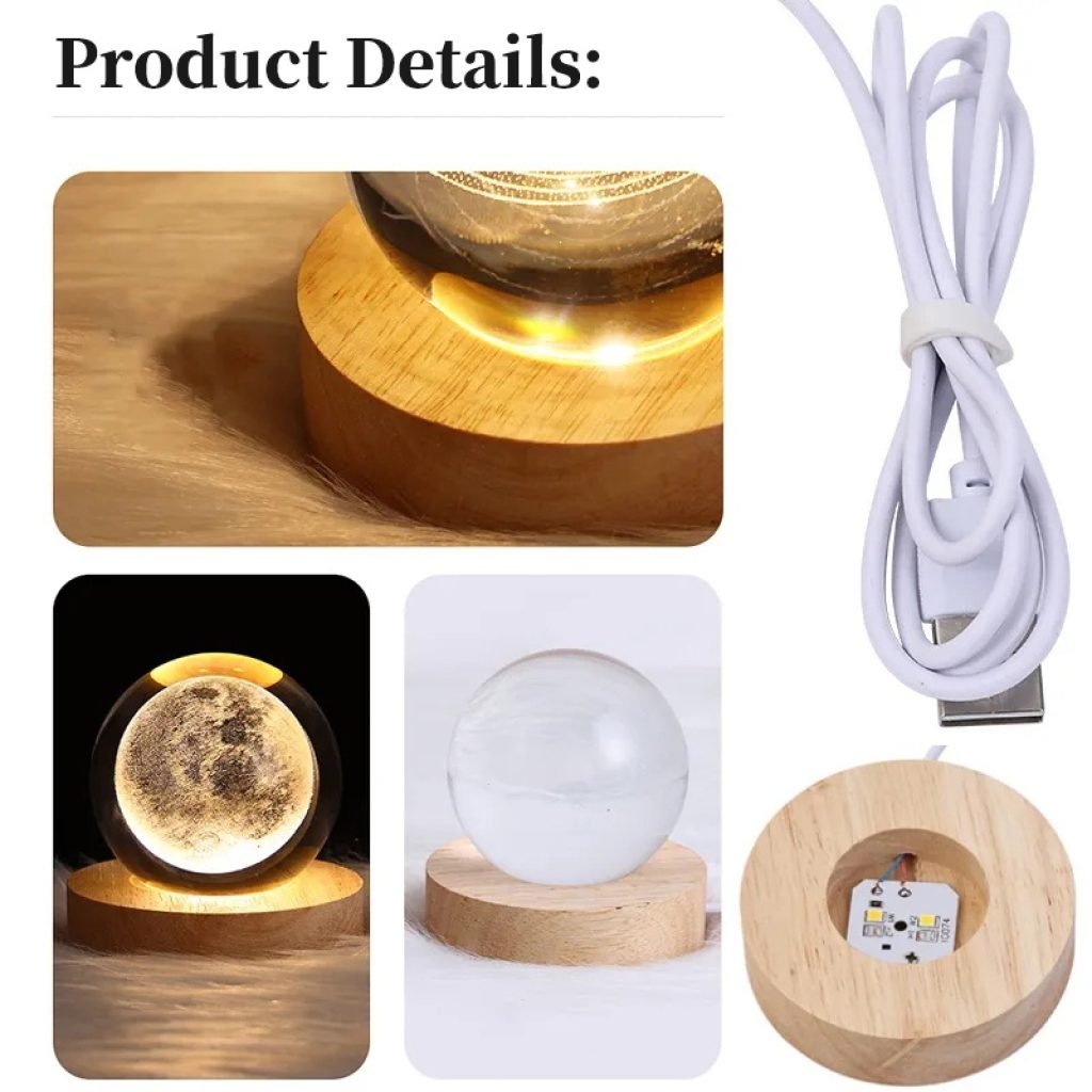 3D Crystal Ball Night Lamp with LED Wooden Base | USB Powered Decorative Night Light
