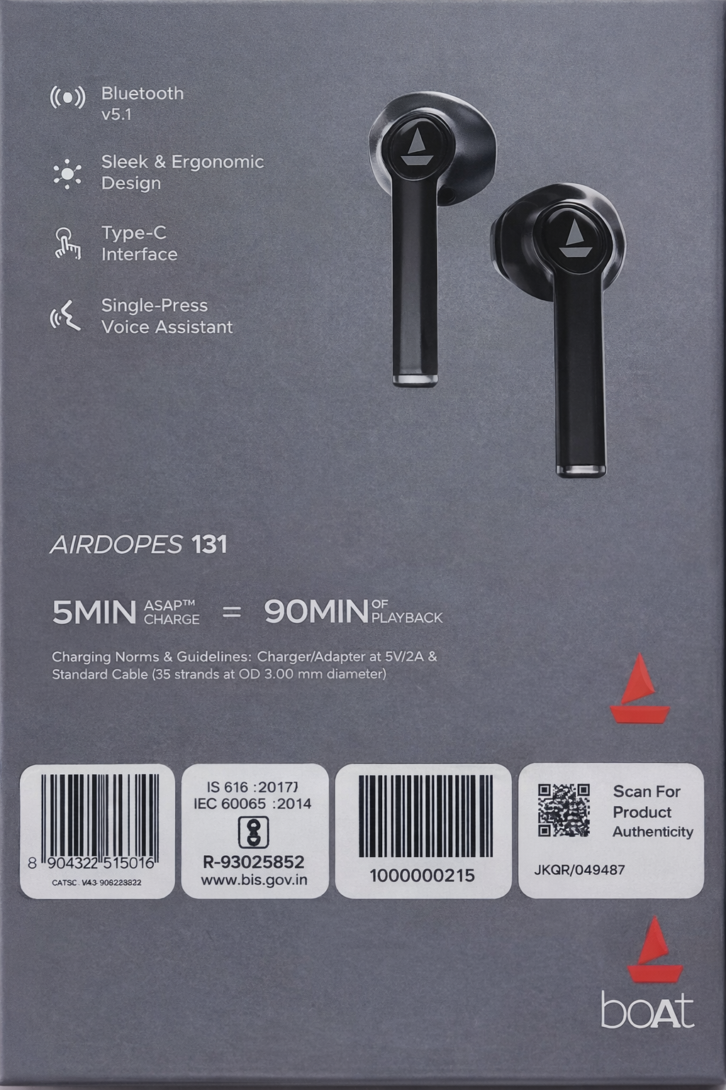 The boAt Airdopes 131 are designed for users who want powerful sound, long battery life, and fast charging in a stylish true wireless form. With up to 60 hours of total playback and ASAP Charge technology, these earbuds are ideal for daily music, calls, and entertainment.